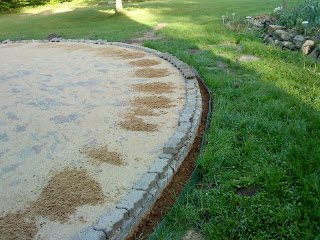 I sidste uge var Tommy forbi og skære kanten fint til, og bedst som jeg troede jeg snart var færdig med projektet kom far og sagde at det nok ville være en god idé at sætte kanten i beton. Så nu har jeg været ved at grave en stribe stabilgrus op igen – rent molboarbejde!